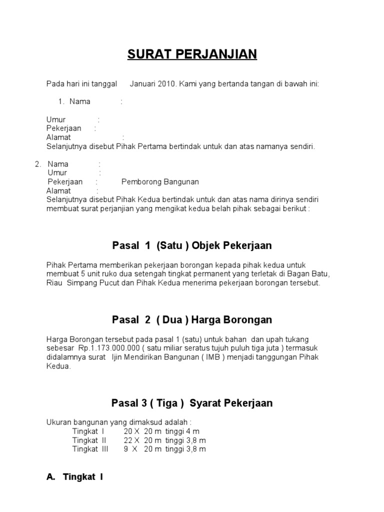 Surat Perjanjian Kontrak Pekerjaan Borongan Pdf