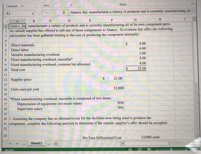 Solved Alanco Inc Manufactures A Variety Of Products And Chegg Com
